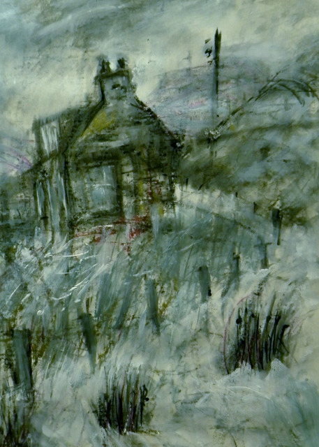 The weather's been somewhat uninviting while we've been up here, and so sketching opportunities have been limited. Today was no exception so I thought I'd try a little painting. Not in the studio, so had to use the materials I had brought - acrylics, watercolours, gouache and charcoal. Also subject to distractions...out for a little walk and off to the bottle bank (haha) etc.