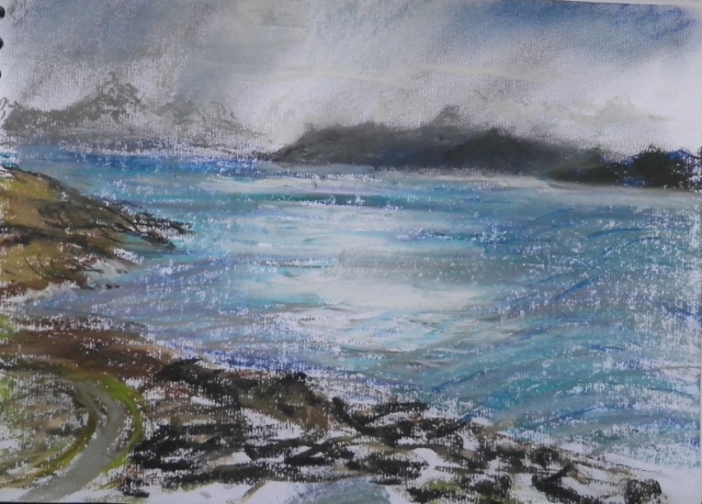 But I had only a limited amount of time to do this sketch before the next rain storm imposed itself. It was another attemt to capture the colours. Done again in pastel for sheer speed and getting intensity of colour.